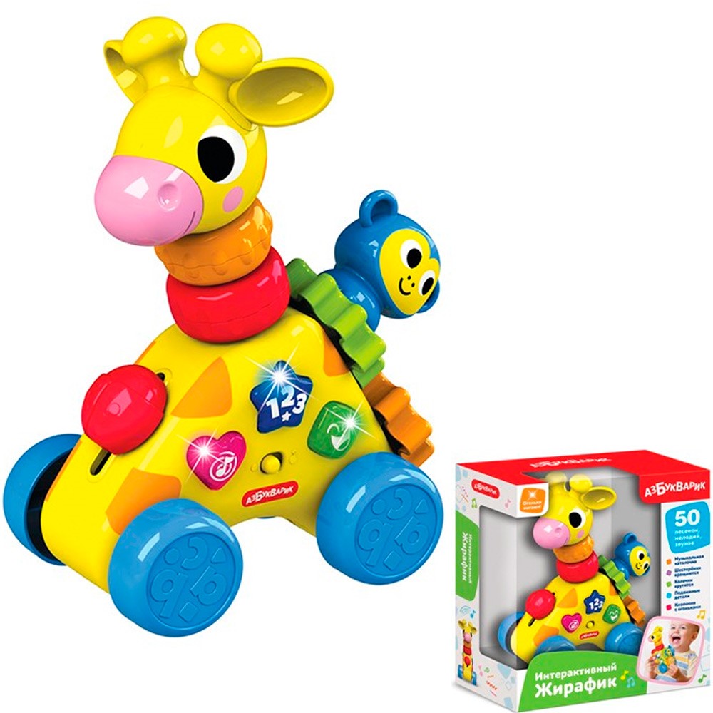 «Интерактивный жирафик» придётся по душе маленьким непоседам. Нажимая на яркие кнопочки, малыш послушает обучающие песенки (про счет, формы, цвета и противоположности), детские хиты и веселые мелодии. Во время звучания песенок на кнопочках мигают огоньки. В процессе игры ребенок развивает мелкую моторику, координацию движений, цветовосприятие и логическое мышление.