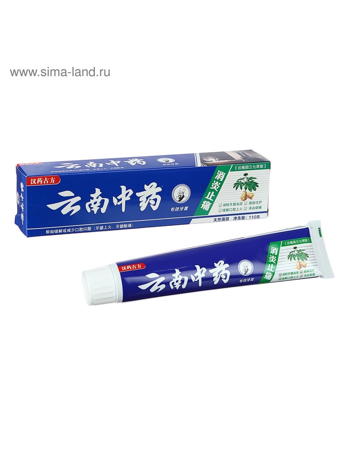 Зубная паста китайская традиционная на травах с женьшенем, противовоспалительная, 110 г (комплект 2 шт)