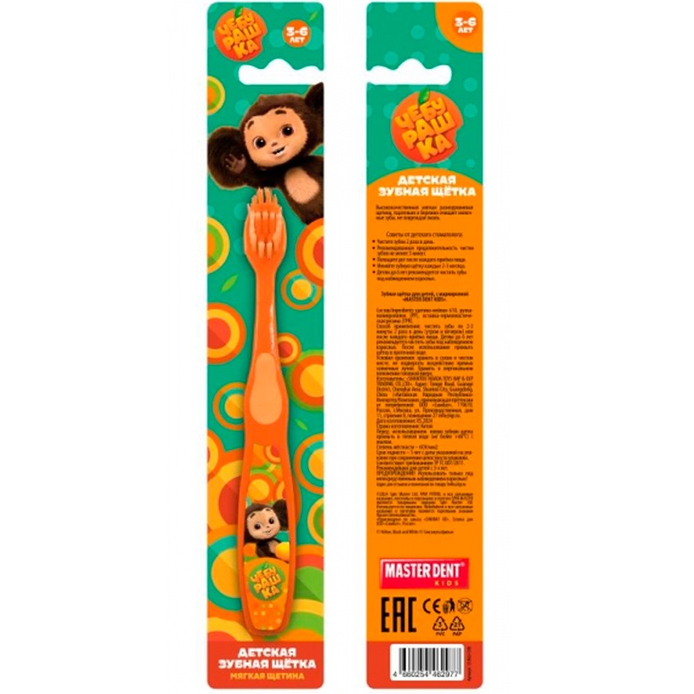 Зубная щетка фигурная для детей Чебурашка оранжевая MASTER DENT 121863-CHB