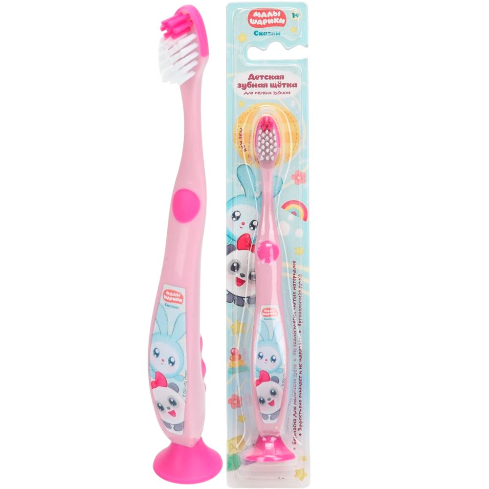 Зубная щетка на присоске для детей Малышарики розовая Заботливая мама 93633-MAL